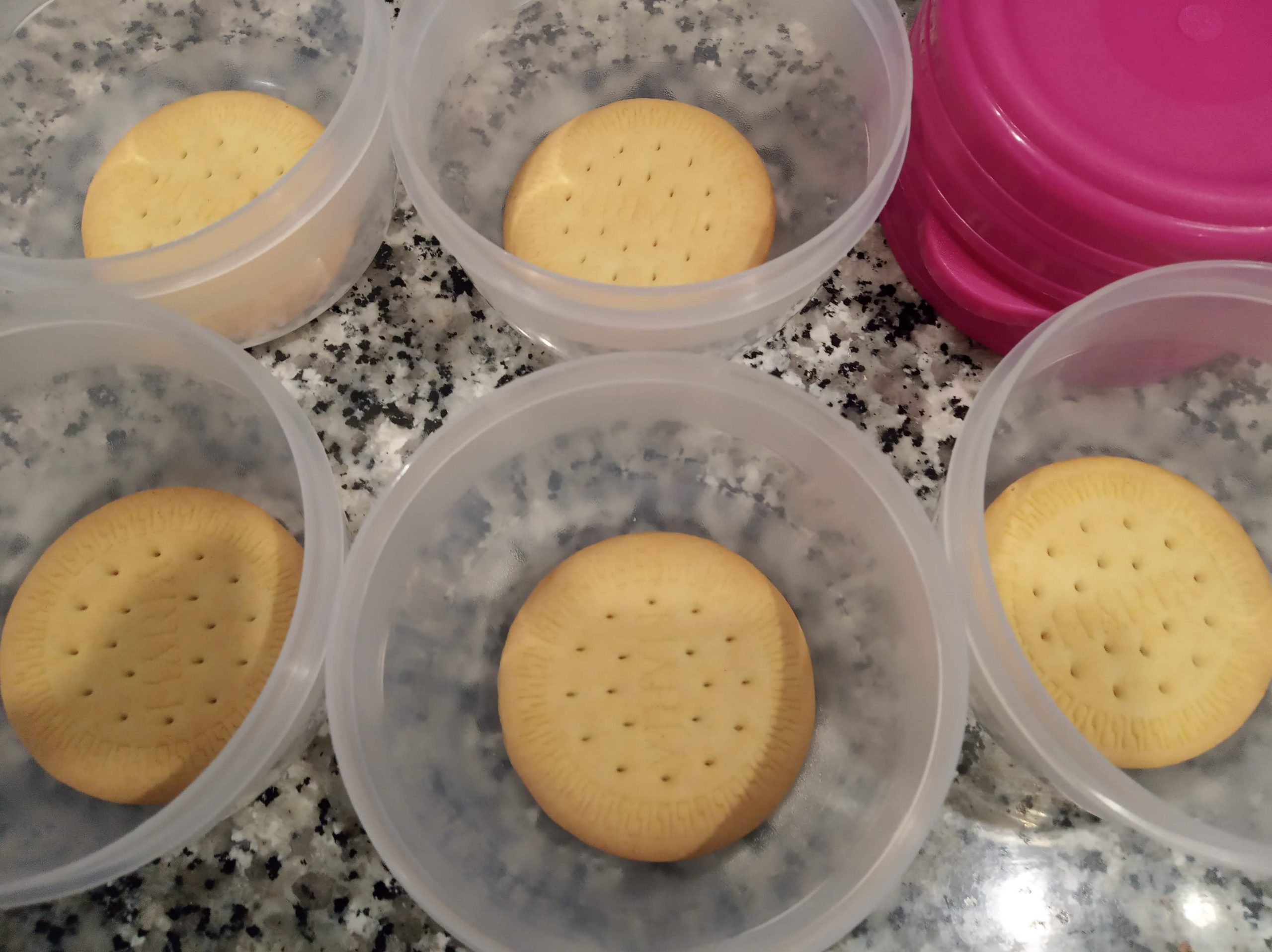 Tener preparado los vasitos y repartir en ellos el turrón. Yo utilice táper en plan casero, pero puedes hacerlo más cuqui para una celebración.