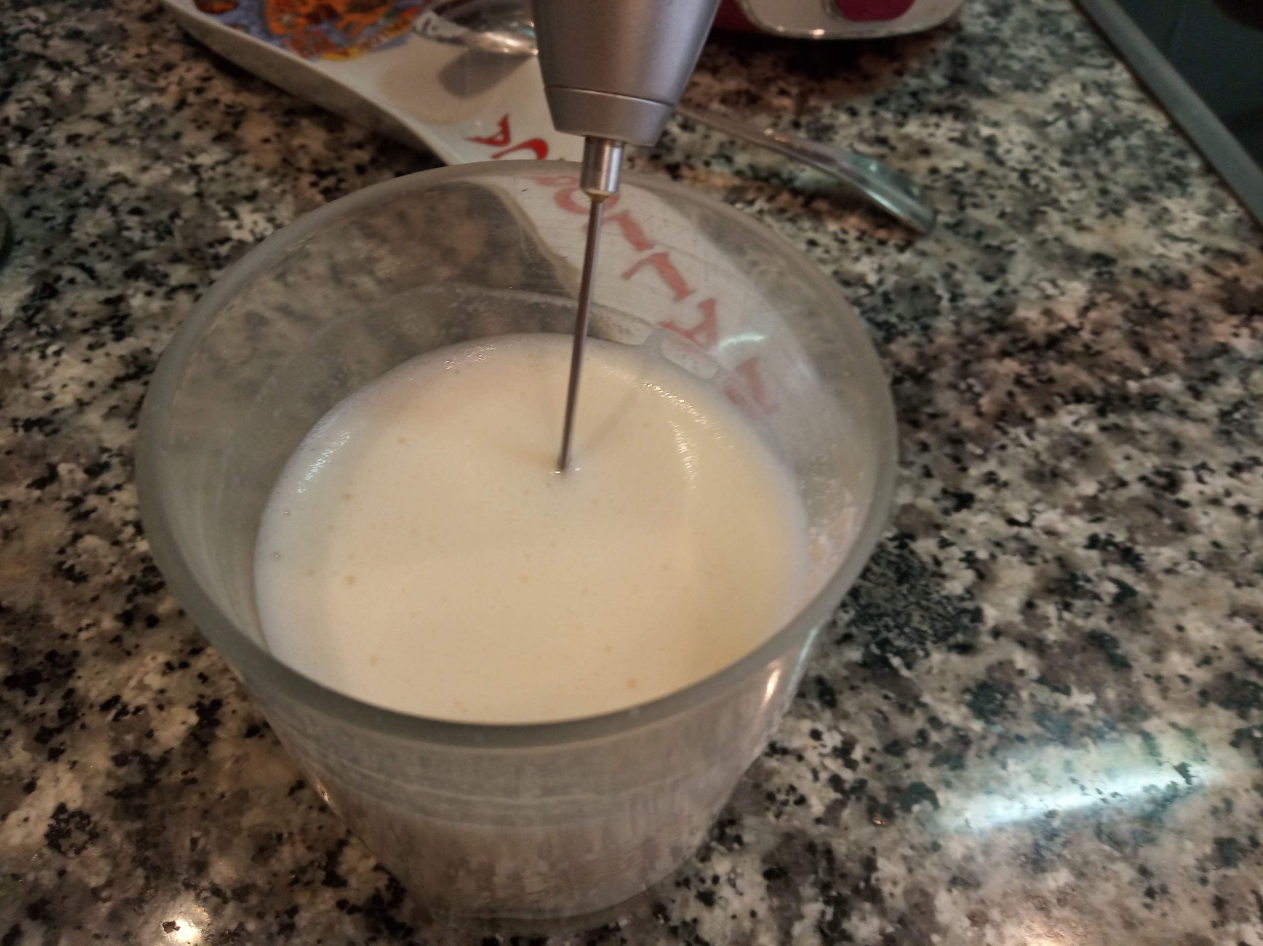 Echar leche en ½ vaso y reservar, el resto ponerlo a calentar.