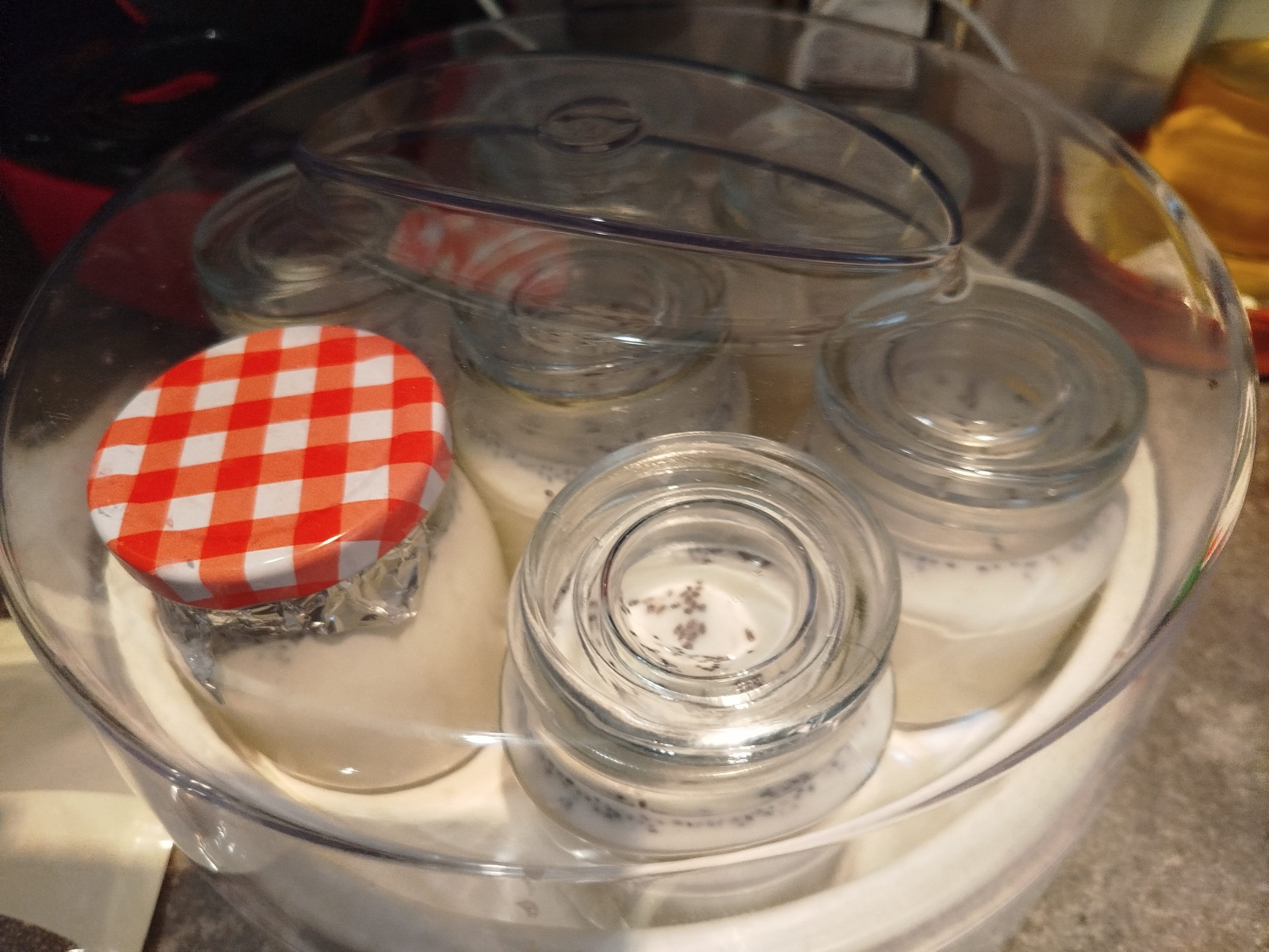 Colocar en la Yogurtera los vasos tapados, si por casualidad, pierdes alguna tapa, ponle papel de aluminio.