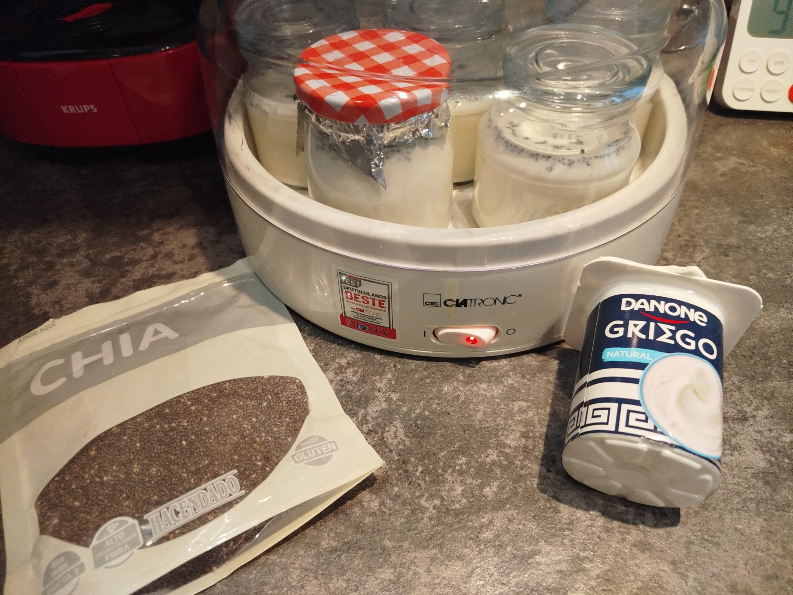 Echar una cucharadita de café con Semillas de Chía, en cada bote de yogur.