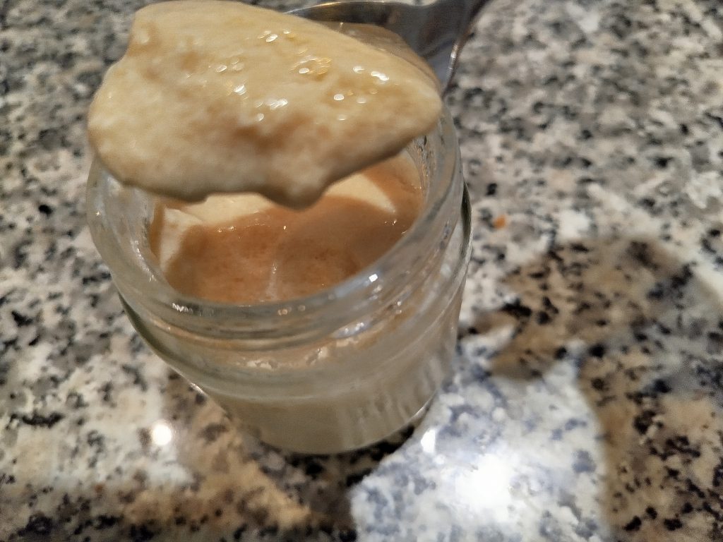 A mi me gusta, que quede tipo petisuis, si te queda liquido abajo, lo puedes pasar por un colador, y te queda tipo petisuis, si queda todo mezclado bien, pero cremoso, lo puedes tomar tal cual.