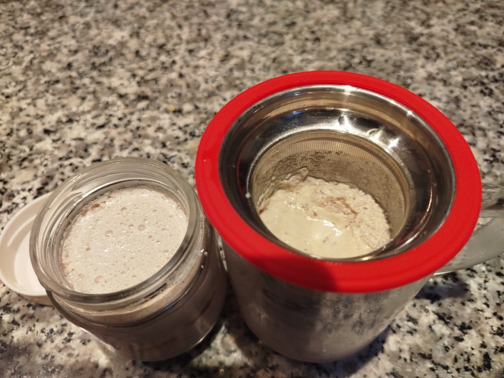 Yo tengo una taza de cristal, con filtro y tapa, para hacer infusiones, y es la que utilizo cada día, para tomarme el yogur tipo petisuis.