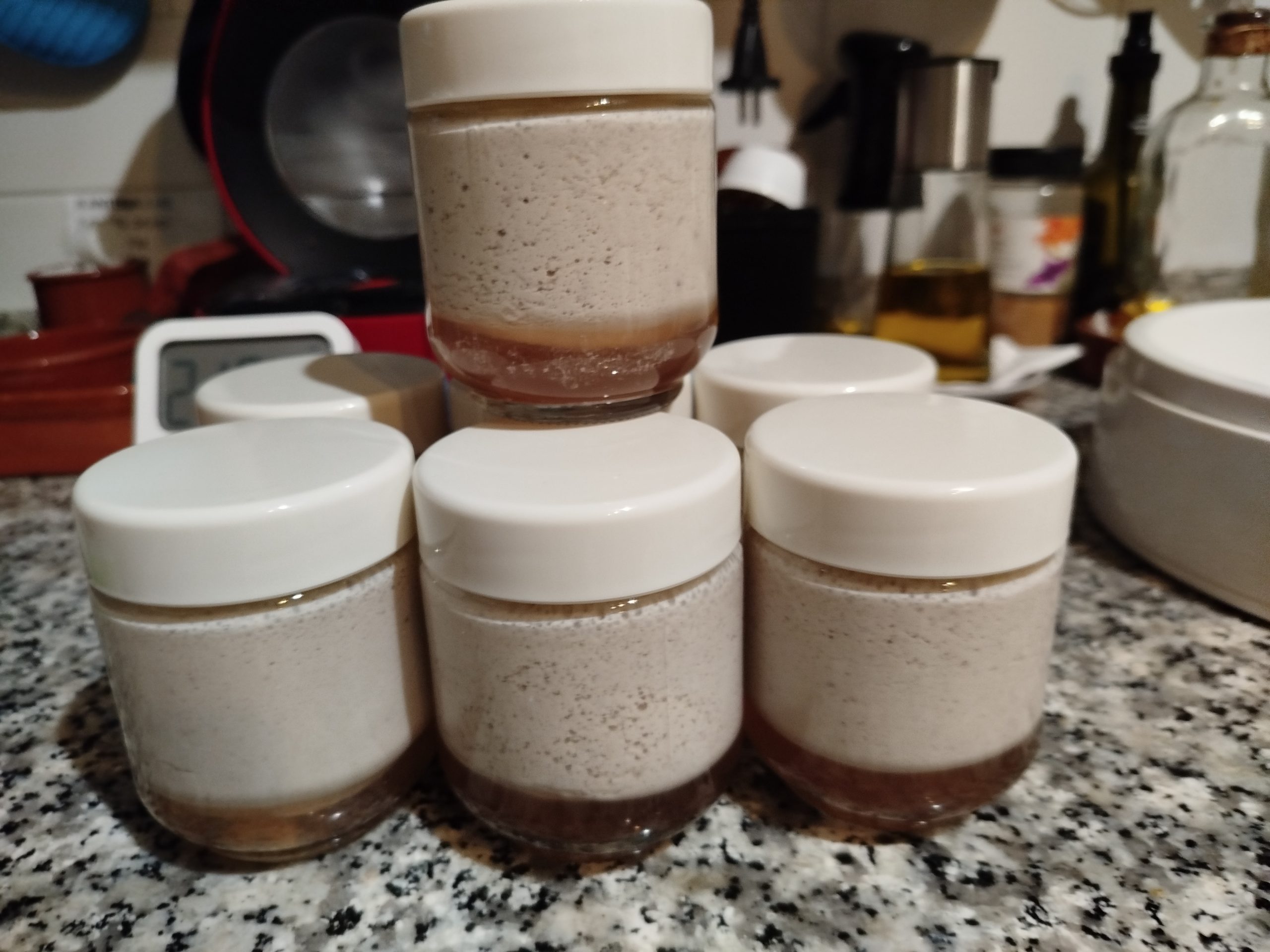 Tapar los botes, y poner en la Yogurtera, tapar con su tapa, y con un paño de cocina, y programar el móvil. o reloj de cocina, 10 h, más tiempo hace que se ponga más agrio.