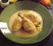 en una cazuela con el vino, la cebolla picada, la mantequilla y el zumo de