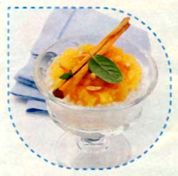 base amplia. Encima, coloca la pulpa de manzana y el almíbar. Espolvorea con la