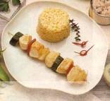 brocheta acompañada de un molde de arroz <<pilaff >>