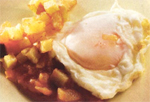 - Cortar las patatas en daditos, freírlas e incorporarlas al pisto. Dar un hervor para que se mezclen los sabores. Servir con los huevos fritos.