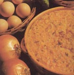 - Se corta la cebolla también en trozos y cuando estén los pimientos, se incorpora a la sartén y se refríe, pelamos el ajo y se incorpora al refrito.