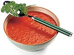 - En el momento de ir a servirlo, pon en cada cuenco tomate picadito y cúbrelo con el gazpacho.
